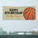 Basketball themed happy birthday banner featuring a basketball court, a ball, and a childrens party banner template.