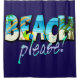 Kids beach please! beach design featuring colourful beach scene including an umbrella, beach ball, bucket and palm fronds.
