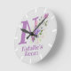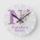 Design features Monogram & Name with Flowers either side in a water colour pastel style. Example name is Natalie. Change name as desired for anyone with a name beginning with L. Kids Bedroom Clock.