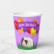 A cute white and brown guinea pig in grass with colourful balloons overhead is the feature on this party paper cup template design. Personalise the text field or edit using the design too to select a typeface style, colour, and size you like.