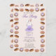 Tea party birthday invitation featuring a cute bunny popping out of a teacup, framed with doughnuts..
