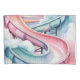 A dreamy watercolor painting of a curved waterslide rendered in soft pastel pink and powder blue hues that blend and flow together like cotton candy clouds. The slide winds gracefully through the composition with gentle curves and spirals, its translucent colors bleeding into each other with the characteristic wet-on-wet watercolor technique. Delicate splashes and droplets of water are suggested through lighter washes and negative space, creating a sense of movement and joy. The background fades into a pale, ethereal wash of complementary pastels, giving the entire scene a whimsical, childhood-memory quality with soft, diffused lighting.