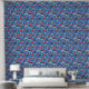 Bright and cheerful kids’ wallpaper featuring cute bugs, bees, ladybirds, flowers and butterflies on a bold blue background — perfect for nursery or playroom walls.