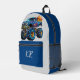 Kids Blue Monster Truck Orange Flames Initials Printed Backpack