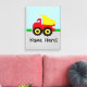 Adorable and fresh primary colours are the key element in this cuper cute kids or boys dumptruck construction theme gift. Features a work dump truck with a red body, yellow dump bed and wheel chucks, and grey exhaust and bumpers. The background contains a grey asphalt road with white markings, green for grass and blue for a sky. A great theme for a boys decor, builder and building trades or children's big machine theme room decor. All Designs Copyright © www.CustomInvitesOnline.com