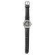 Graphic art kids watch featuring a graphic grey steam train on a black background with white clock numbers. Customise with your name currently reads Alexander.