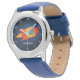 Blue, rocket, space, astronaut, toddler, watch for kids. Custom, Kids, Name, steel blue boys watch. Personalise it with your child's name.