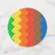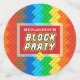 Children's birthday party accessory in the creative toy building blocks classic colours design — red, orange, brown yellow, blue, green — zig-zag bricks with customised birthday boy's or girl's name. Perfect addition to a "Kid's Building Bricks Block Party" theme.