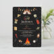 Celebrate your little adventurer's big day with this vibrant Camping Birthday Invitation! Featuring a bold black background, this eye-catching design showcases a playful arrangement of colorful camping items—including a tent, lantern, campfire, and more—circling the party details. Perfect for kids who love the great outdoors, this invitation sets the tone for an exciting adventure-filled celebration. Ideal for birthdays with themes of camping, nature, or outdoor fun!