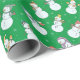 Kids Christmas Cute Snowman in Hats Green Wrapping Paper