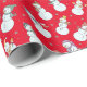 Kids Christmas Cute Snowman in Hats Red Wrapping Paper