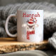 Kid's Cute Christmas Personalised Mug. What a fun way to celebrate the holidays with this festive kid's Christmas custom mug. Reindeer mug with scarf.