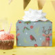 This cue and quirky kids Christmas wrapping paper design features a pattern with a cute Rudolph the red-nosed reindeer, red robin, holly, snow, Christmas tree, and flowers. The perfect Christmas wrapping for a reindeer-loving kid!