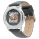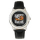 Kids classic leather strap watch shown in black with a sporty basketball art print.
