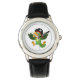 Kids classic leather strap watch shown in black with a cute pirate parrot print.