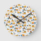 Kids Construction Dump Trucks Vehicle Pattern Round Clock
