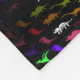 Multicolored fleece blanket with a rainbow dinosaur print. Cosy and colourful t rex, triceratops, pterodactyl, gallimimus, and diplodocus.