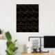 Psychedelic poster print of rainbow dinosaurs. Multicolored streams of t rex, triceratops, pterodactyl, gallimimus, and diplodocus. Available in different paper types and sizes.