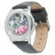 This kids watch is shown with a cute farm cow and pink peony flowers art print.