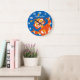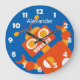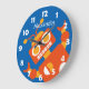 Kids Crazy Orange Robot Personalised Cool Blue Large Clock