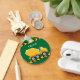 Cool custom construction vehicle gift for a child who loves yellow concrete cement mixers on a green keychain. Fun vehicle design for a little boy who loves cars and trucks. Customise with your kid's name under the black and yellow caution tape.