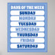 Kids Cute Blue Days Of The Week Learning Boys Room Poster