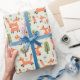 Kids Cute Happy Foxes Playing Running in Forest Wrapping Paper