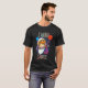 I give wanted to give this a 4 instead of a 5 because these Basic DARK T0shirts run unexpectedly SLIM or Narrow. Which is great if you do not have a potbelly, but I have a paunch. It isn't the shirt's fault that I've got a beer belly. The design and shirt itself is a quality cotton shirt. The color is more of a deep purple, but still a very pretty color. The Basic DARK T-shirts run a bit SLIMMER than the Basic Ts. The neck is a fraction narrower (or seems to be narrower) also. I'm a paunchy middle-aged woman and my neck is 12 inches (31cm) thick and the neckline fell about the same as in the photo of the man, and I had the desire to tug it a bit. So if you're a thick necked man or like loose shirts, be aware these are slimmer shirts. Once I get rid of my lockdown paunch it'll look great. The shirt washed well in cold water with no apparent bleeding. We don't have a dryer, so it hung dry. Did not shrink. Love the colors and the design. The design looks smaller on my shirt than it does on the model on-line. But still, it looks good on the shirt. The printing looks as it does on the model, just the size seems fractionally smaller. Washed garment in cold water, hung dry and design appeared unaffected.