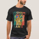 I give wanted to give this a 4 instead of a 5 because these Basic DARK T0shirts run unexpectedly SLIM or Narrow. Which is great if you do not have a potbelly, but I have a paunch. It isn't the shirt's fault that I've got a beer belly. The design and shirt itself is a quality cotton shirt. The color is more of a deep purple, but still a very pretty color. The Basic DARK T-shirts run a bit SLIMMER than the Basic Ts. The neck is a fraction narrower (or seems to be narrower) also. I'm a paunchy middle-aged woman and my neck is 12 inches (31cm) thick and the neckline fell about the same as in the photo of the man, and I had the desire to tug it a bit. So if you're a thick necked man or like loose shirts, be aware these are slimmer shirts. Once I get rid of my lockdown paunch it'll look great. The shirt washed well in cold water with no apparent bleeding. We don't have a dryer, so it hung dry. Did not shrink. Love the colors and the design. The design looks smaller on my shirt than it does on the model on-line. But still, it looks good on the shirt. The printing looks as it does on the model, just the size seems fractionally smaller. Washed garment in cold water, hung dry and design appeared unaffected.