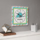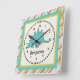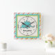 Personalise this ccolorful square wall clock featuring a cute stegosaurus for a special child's room. Just edit his or her name in the easy Zazzle text editor with a simple step. Created in green and blue colour accents.