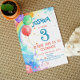 Each invitation is a work of art, featuring a playful arrangement of balloons in every hue of the rainbow, accompanied by a shower of confetti that adds an extra dose of excitement and fun. The lettering design is bold and eye-catching, ensuring that your invitation stands out and captures the attention of every guest.