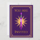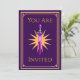 Magical purple sword birthday invitation perfect for a 5-year-old hero. Ideal for fantasy warrior themed parties and epic kids celebrations. Editable text for name, date and party details.