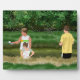 Little kids fishing at the local pond while camping. Big brother showing little sister how to fish. Fishing tabletop easel.