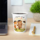 A charming woodland graduation design featuring a cute fox, gentle bear, and sweet bunny wearing graduation caps, laughing, dancing, and celebrating together. They stand on soft green grass with delicate flowers, while floating hearts, sparkles, and confetti fill the air above them. A warm golden glow background creates a cozy and joyful atmosphere, bringing this adorable forest animal scene to life. Perfect for preschool or kindergarten graduation parties, these woodland-themed paper cups add a sweet and playful touch to your celebration table.