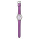 Graphic art kids watch featuring a simple purple butterfly on a white background. Great for school age girls learning to read a clock as features both minutes and hours numbers in clear purple. Customise with your child's name example reads Hannah.