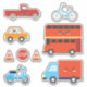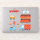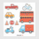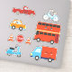 9-sticker pack of ground transportation cartoon vehicles in red, blue, and orange. This is one of two different kids' transportation sticker packs on the LDTreasures store.