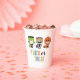 Halloween costume party trick or treat paper cups with cute frankenstein, cat, pumpkin costumes.