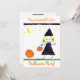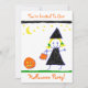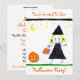 Kids Halloween Party! Customisable Halloween Party Invitations. Add your own details in minutes to the front and back of this Halloween Invite! Cute child drawing of a little girl dressed up as a witch with her trick or treat bag. Moon and stars are in the sky and there is a carved pumpkin at her side. Each invite comes with an envelope. Great for a children's Halloween Party!