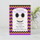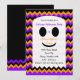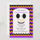 This kids Halloween party invitation features a cute white ghost on a chevron background featuring black, orange, and purple chevron stripes. The fun part of this invitation is you can put all the party details for your Halloween party right inside the ghost. There are even a few chevron stripes along the back of the invitation. This is a really cute and fun invitation for a kids Halloween Party. Copyright henishouseofpaper