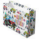 An Adorable Large Gift Bag Of Cartoon Big Wheel Cars And Trucks For Birthday Gifts