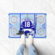 We can create this design in any colour scheme, just contact us PRIOR to purchase via the ask the designer link to discuss the changes you require. Great design for the young Hockey players bedroom and en suite, This design features a modern design blues background representing the ice on a ice rink with hocky rink markings , it also features a blue and white hockey shirt that can be customised with personal number and name and also a hockey helmet. hockey stick and skates