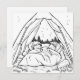 Cute colouring page with a with a camping theme. Two little kids sleeping in their sleeping bags in a tent on the campsite.