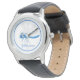 This kids stylish classic leather watch is shown with a Black leather strap with a cute Blue dragonfly art print.