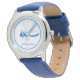 This kids stylish classic leather watch is shown with a Blue leather strap with a cute Blue dragonfly art print.