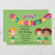 This customisable Hawaiian Luau kids party invitation features three girls wearing grass skirts and leis and customisable text.