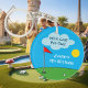 Kid's miniature golf Birthday party keychain gift. Fun colorful illustration for children. Suitable for boys and girls. Sports themed celebrations with activities for small kids. Cheerful green putt putt course with flag, ball, clouds and sun. Cute typography template.