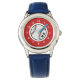 The blue band is the right color for a boys watch. My grandson loves lacrosse and the watch is easy to put on. He is ten years old. The lacrosse picture is very clear and I like the blue hands on the watch. It's good for teaching time.