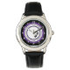 Personalise this kid's modern sporty watch with editable initials. Design is a circular text graphic in the centre in purple and black and white details. Just edit the letters in the easy Zazzle editor. Many other bezel and band style options available to select from to customise further to make it a gift for a kid.