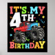 Kids Monster Truck Its My 4th Birthday Boy 4 Four Poster