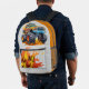 Kids Monster Truck with Orange Flames Initials Printed Backpack